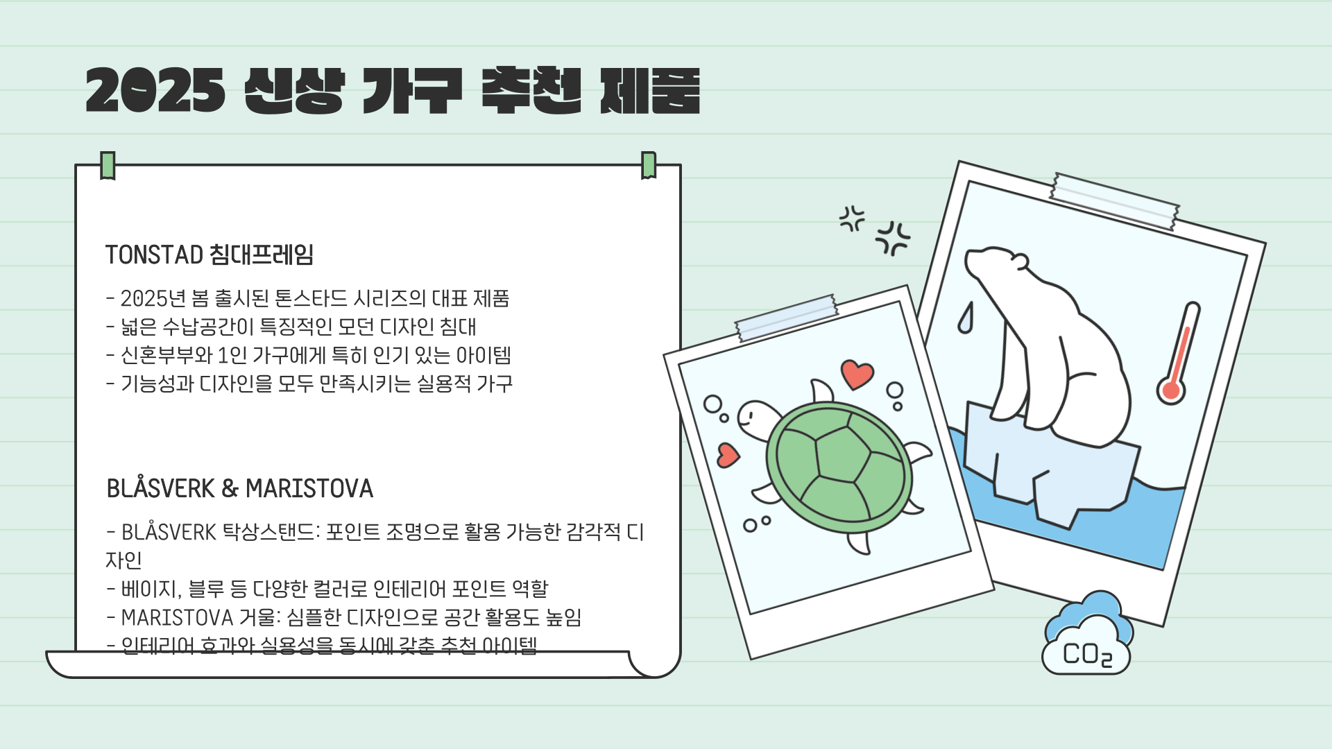 올해는 특히 미니멀한 디자인과 실용성을 모두 갖춘 신상 인테리어 소품들이 각광받고 있어요. BÄCKNATE 펜던트 전등갓이나 셰나베크 2인용 소파베드는 공간에 감성을 더해주는 아이템으로, 다양한 인테리어 스타일에 자연스럽게 녹아들어요. 🛋️