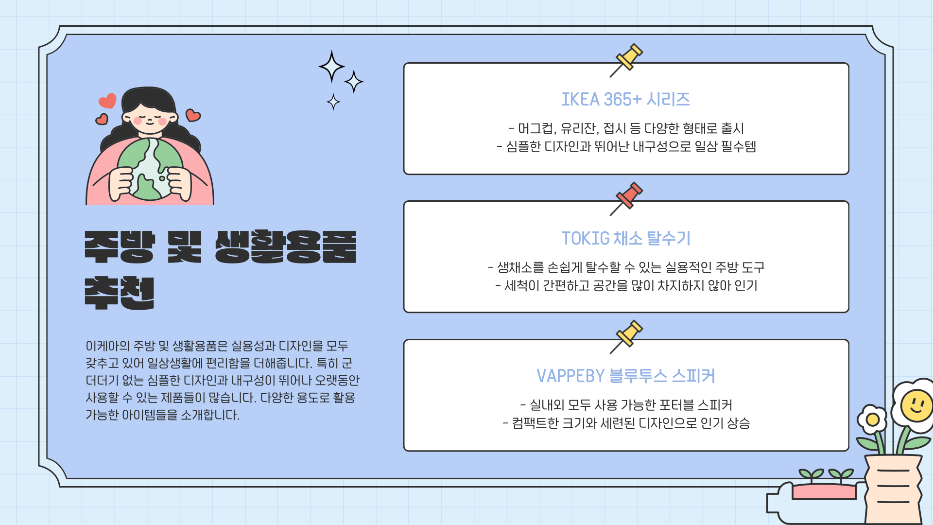 이케아는 가성비와 실용성을 동시에 만족시켜 주는 브랜드로 잘 알려져 있어요. 특히 2025년을 맞이해 기존 스테디셀러부터 신상 제품까지 더욱 다양한 아이템이 인기를 끌고 있답니다. 집 꾸미기, 수납, 생활용품, 주방용품까지 전반적으로 다루는 이케아 추천 제품을 이번 글에서 한눈에 정리해 볼게요. 😊