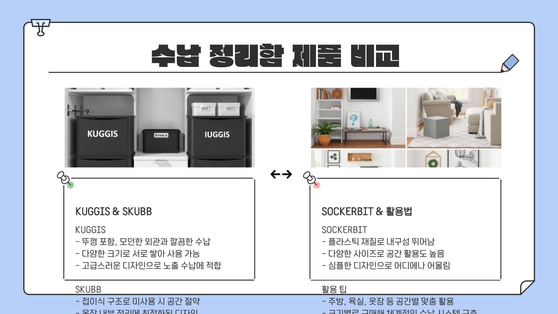 공간별로 필요한 제품을 구분해서 살펴보면 쇼핑이 훨씬 쉬워져요. 옷장 정리를 원한다면 VARIERA(바리에라) 봉지 정리대나 SKUBB 수납함이 좋고, 주방 정리에는 SOCKERBIT 수납함이나 RINNIG 행주처럼 실용적인 소품들이 유용하답니다.